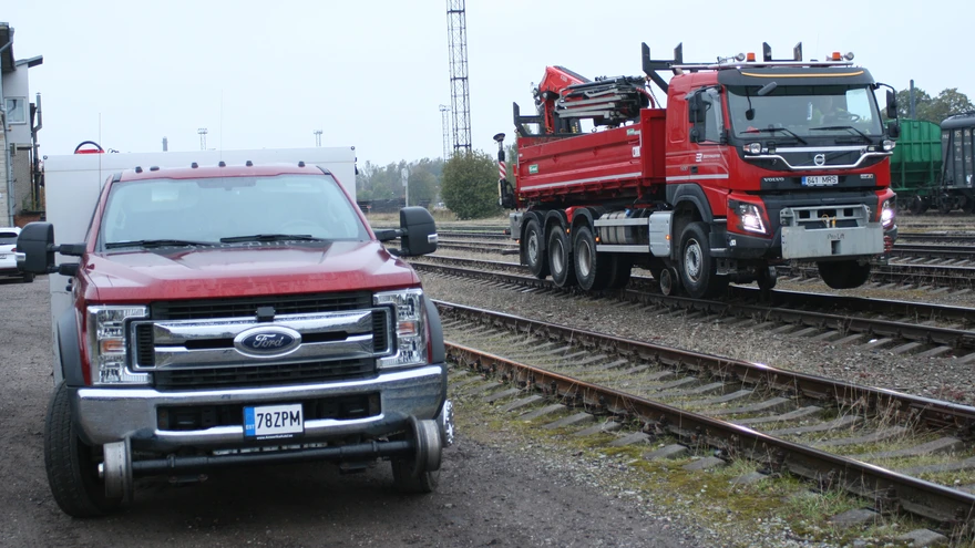 | foto: Ain AlvelaEesti Raudteel on rööbastel sõitmiseks Hi-Rail-ratastel eritehnika, mille hulka kuuluvad nii teetööliste autod kui tõstukitega varustatud elektrivõrkude remondibrigaadi auto. Lisaks ekskavaatorid, samuti spetsiaalne päästerong.