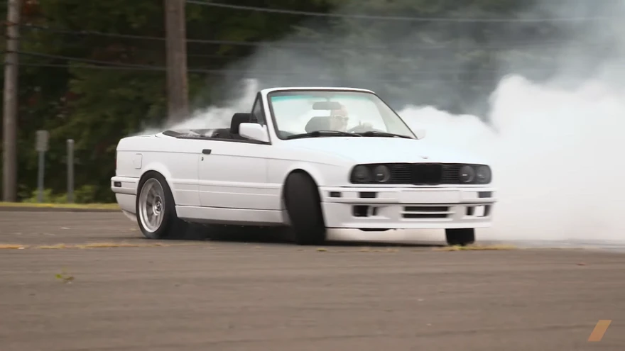 1992. aasta BMW 325i Cabrio omaniku Jon Volki pingutuste tulemusena sai BMW-st auto, mille jaoks pole mingi probleem oma rehvid suitsuks konverteerida.