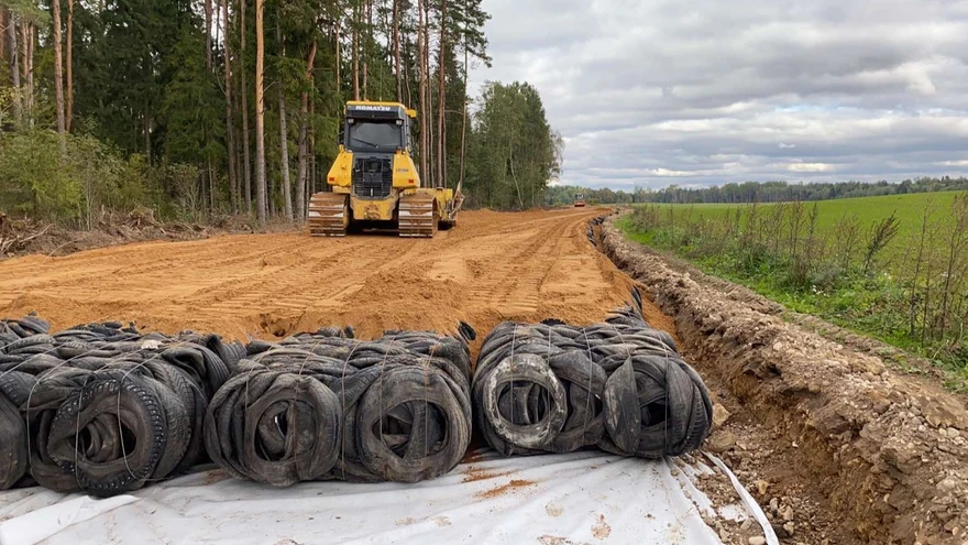 Rehviplokkide kasutamine Läpi-Ojaküla tee rekonstrueerimisel. | foto: Tariston ASTapal valmib järgmise aasta juunikuus Eesti esimene rehviplokkidest tee, mis lõpetab ära vanarehvide käitlemise probleemi. Mujal maailmas, nagu Soomes, Rootsis, Ühendkuningriigis ja Ameerika Ühendriikides, on antud tehnoloogia juba kasutuses ligi 20 aastat. Nüüd kasutatakse esmakordselt sarnast lahendust ka Eestis Läpi-Ojaküla tee rekonstrueerimisel, mis on ligipääsutee kaitseväe keskpolügoonile.