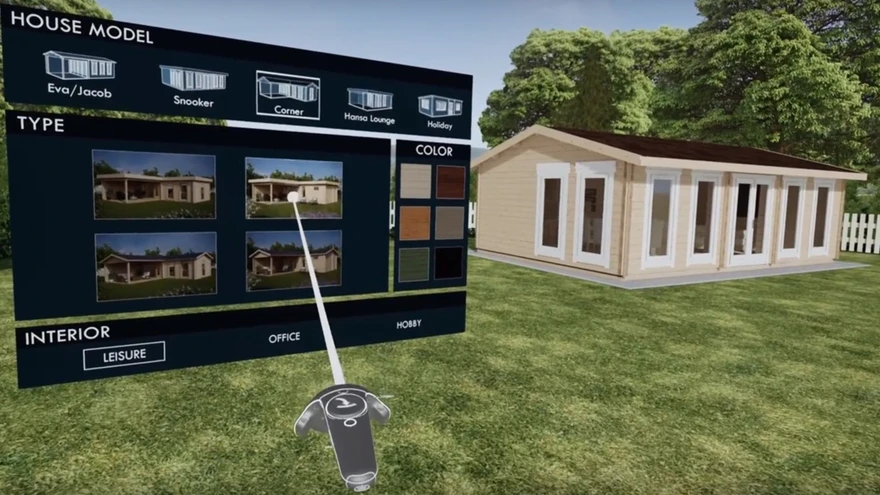 Eesti ettevõte Hansa24 Group OÜ, kes müüb Eestis toodetud puidust aiamaju üle maailma, on loonud maailmas ainulaadse virtuaalreaalsuskeskkonna (virtuaalse näidisplatsi), kus on võimalik tutvuda ettevõtte erinevate aiamaja mudelitega. Koostöös ettevõttega Downtown Visuals, arendati välja interaktiivne virtuaalne keskkond, kus on võimalik reaalselt tajuda majade mõõtmeid, ruumides ringi jalutada, muuta maja värvi, katust, mööblit jne.