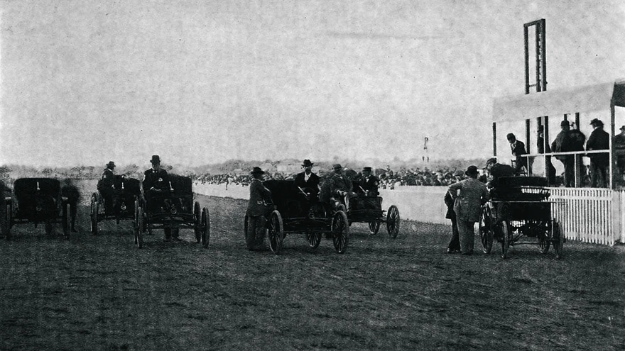 Maailma esimene tänapäevasele autovõidusõidule sarnanev võistlus peeti Pariisi ja Roueni vahel 1894. aastal. Järgmisel aastal võisteldi autodega juba USAs ja teadaolevalt korraldati esimene võidusõidurajal peetud võistlus samuti seal 1896. aasta septembri algul. Toimumiskohaks oli ratsavõistlusteks ehitatud liivarada Rhode Islandi osariigis Providence’i linnas Narragansett Park’is. Võistlus peeti osariigi suurlaada State Fairi ajal ja osalemas oli kaheksa autot, neist kaks elektriautot.