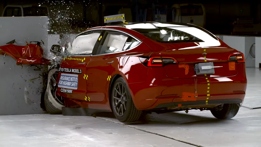 Tesla Model 3 IIHS-i väikese ülekattega avariitestis. | foto: Kuvatõmmis /YoutubeInsurance Institute for Highway Safety (IIHS) viis läbi Tesla elektriauto Model 3 avariitestid ning tunnistas auto maksimaalse hinde Top Safety Pick+ vääriliseks.