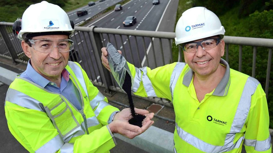 Asfaldi koostisesse segatakse rehvipuru. | foto: Highways EnglandHighways England testib kiirtee M1 ühel lõigul uut asfaldi versiooni, millesse on segatud vanadest rehvidest toodetud kummipuru.