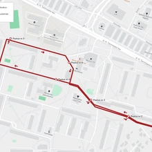Kaheksa istekohaga isejuhtiv buss liigub teisipäevast pühapäevani 1,8 kilomeetri pikkusel ringil kell 10–16 ligikaudu 25-minutilise intervalliga. Esmaspäeviti isejuhtiv buss ei sõida. Isejuhtiva bussi liikumistee lähedusse jääb lisaks kortermajadele Tammsaare tee bussi- ja trollipeatus Mustamäe teel, Mustamäe Päevakeskus, endine Mustamäe linnaosa valitsuse hoone ning Maxima pood (Tammsaare tee 133).