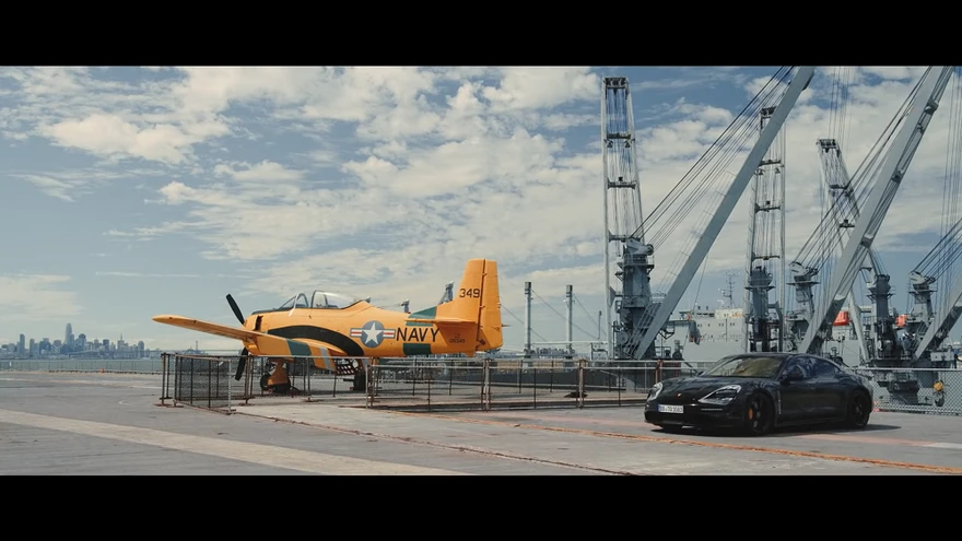 Porsche Taycan lennukikandja pardal. | foto: Kuvatõmmis /YoutubePorsche uhiuus elektriauto Taycan demonstreeris lennukikandja USS Hornet pardal oma esmlassilist dünaamikat, suutes lennurajal kiirendada 145 kilomeetrini tunnis ja siis enne üle parda lendamist taas seisma jääda.