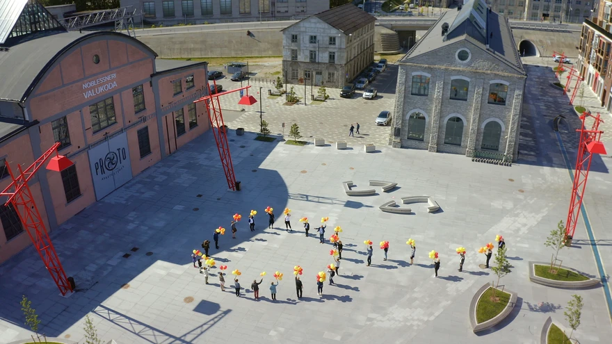 | foto: Andrus KõresaarTäna taasavas oma uksed Noblessneri sadamalinnakus asuv PROTO avastustehas. Kauaoodatud sündmuse tähistamiseks joonistus avastustehase esisele platsile suur kuumaõhupalli kujutis, mis koosnes PROTO enda töötajatest.