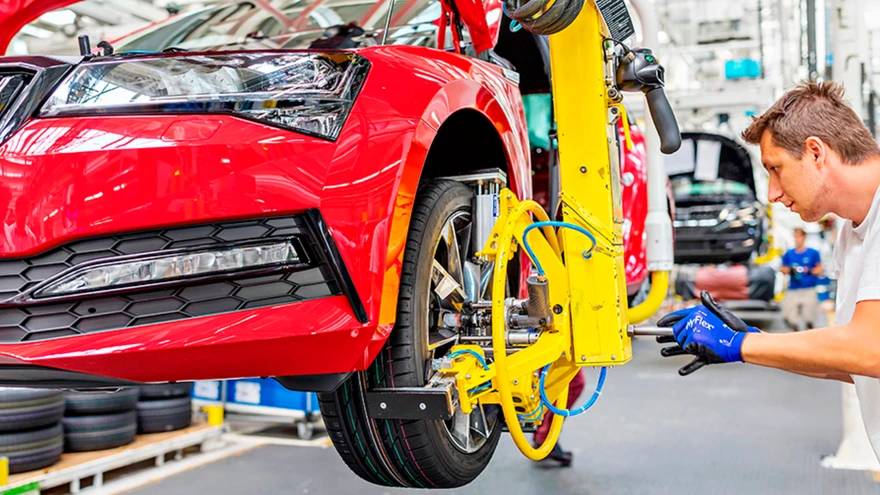 Škoda Superb konveieril. | foto: ŠkodaŠkoda alustas oma Kvasiny tehases värskendatud kolmanda põlvkonna Škoda Superbi tootmist.