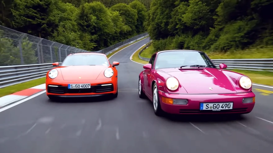 Kahe Porsche supertest. | foto: Kuvatõmmis /YoutubeSaksa ajakiri Sport Auto korraldas Nüburgringil kahe Porsche võrdlustesti: parimat ringiaega püüdsid Porsche 964 RS ja 992 Carrera S.