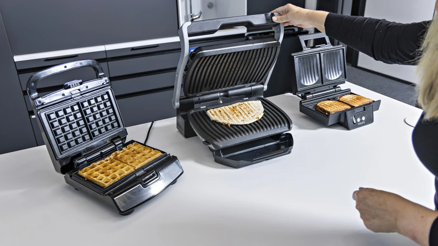 Küpsetusplaatide vahetamisega võib tavalise grilli muuta hoopis vahvliküpsetiks. Tefal Snack Collection grilliga tulevad kaasa kaks erineva profiiliga küpsetusplaati. Kolmnurksete võileibade kõrval saab grillil valmistada ka Belgia stiilis vahvleid. Lisaks on seadmele saadaval erinevate profiilidega plaadid, mille hind jääb paarikümne euro juurde. Teisalt aga maksab Tefal koos kahe lisaplaadiga kaks korda rohkem Krupsist, ent seadmete põhifunktsionaalsus on tegelikult sama.