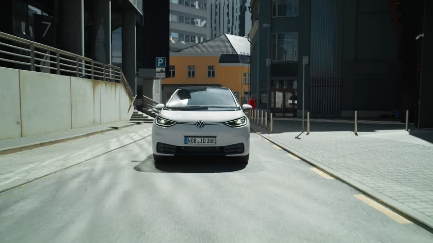 Volkswagen ID.3 Tallinnas. | foto: Kuvatõmmis /YoutubeKoos Volkswageni uue elektriauto ID.3 esitlusega avaldati ka esimesed ametlikud videod uuest autost, need on pea täielikult filmitud Eestis.