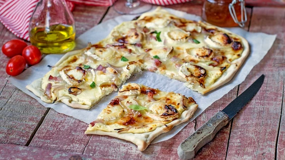 Kas see on valge pitsa või pirukas? Vahet pole: see on igatahes vastupandamatult maitsev ja koos salatiga suurepärane eine....