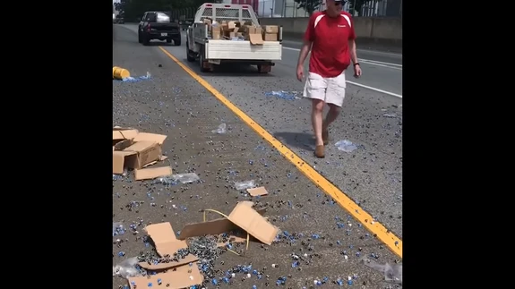 USA-s Atlantas juhtus ainulaadne õnnetus: maanteel läks külili ning paiskas oma laadungi laiali sadu tuhandeid täringuid kandnud veoauto....